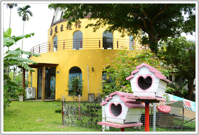 來到集集將車停到公有停車場後,看到對面有一棟還蠻顯眼的黃色建築..